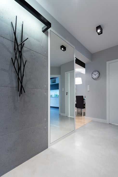 Бесшовная плитка с эффектом под бетон в прихожей