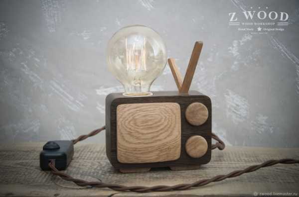 Еще одна ретроспективная модель подарка в форме телевизора, но только в этот раз его функция — освещение. Качественно отшлифованная древесина приятна на ощупь и излучает буквально доброту. Поэтому такие презенты в интерьер дома вписываются хорошо.