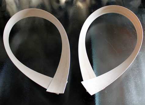Для того, чтобы сделать данное сердце, нам потребуется: две полоски шпона, клей ПВА, ножницы и лак. Соедините два конца полоски вместе и склейте, повторите это действие со второй полоской. Затем, склеиваем их вместе и обрезаем лишнее. Вуаля! Можете покрыть сердце любым лаком для дерева, чтобы подчеркнуть его рисунок.