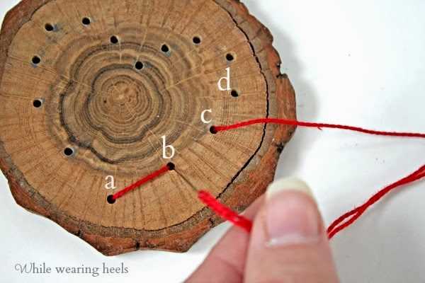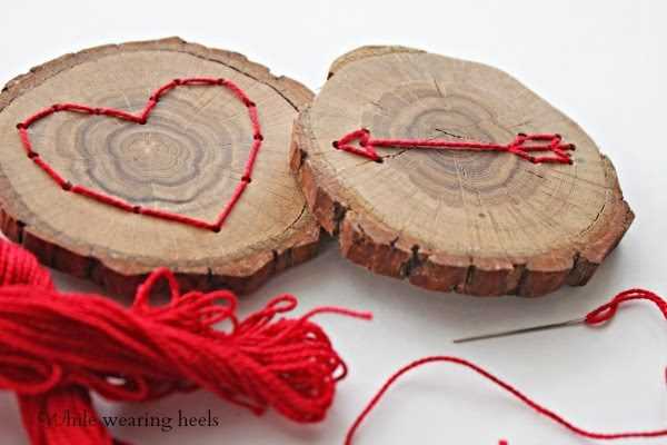 Очень интересная идея с использованием натурального дерева. Если вы хотите сделать такой подарок, у вас должен быть небольшой кусок дерева, яркие нитки и дрель. Одолжите у мужа дрель или шуруповерт, просверлите отверстия по контуру рисунка, который вы выбрали. Только аккуратнее с инструментом, не повредите пальцы, особенно, если вы делаете это впервые. Затем, продеваем нить в отверстия и вуаля! Правда, просто?