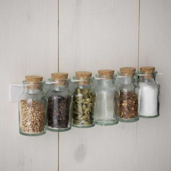Маленькие стеклянные банки с пробковыми крышками для разных видов специй и приправ – незаменимая вещь для любой настоящей хозяйки.