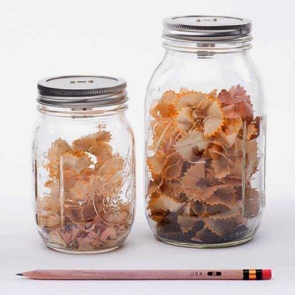 Стеклянные банки-органайзеры для всевозможных канцелярских принадлежностей.