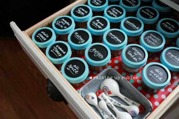 Повторное использование старых стеклянных банок для хранения приправ и специй.