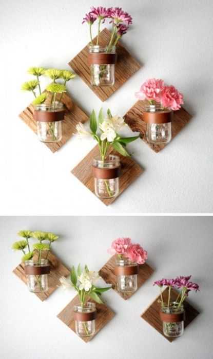 Настенные вазы из стеклянных банок, которые привлекут внимание гостей.
