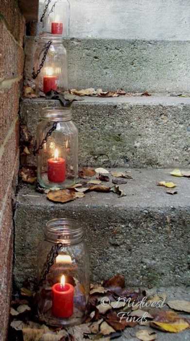 17. Хорошая идея для украшения загородного дома: банка на веревке со свечой внутри.