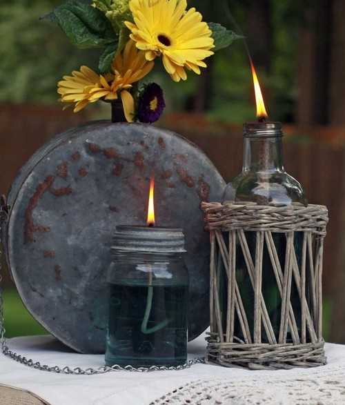 Стильные подсвечники из небольших стеклянных банок, которые станут полезной вещью на дачном участке.