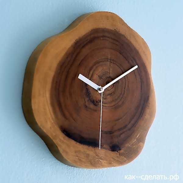 Особенно интересно такие часы смотрятся, если окружность спила имеет неровную форму с корой на поверхности. Правда кору необходимо закрепить, ведь она способна портиться с течением времени.