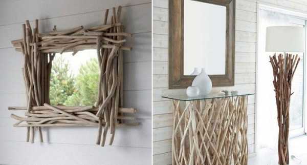 - Ветки в интерьере могут использоваться в качестве комплектующих оригинальной мебели, ножек, подставок, держателей или рамок зеркал.