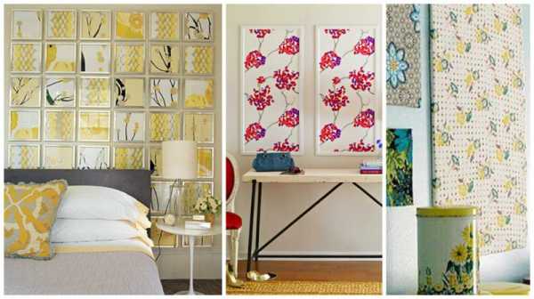 Панно из остатков обоевИногда создают составные картины из остатков обоев, когда 4 или 9 маленьких изображений, упорядоченно расположенные на стене, составляют целостную композицию. Часто в этом случае картину помещают под стекло, чтобы создавался еще больший декоративный эффект.
