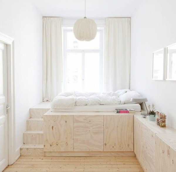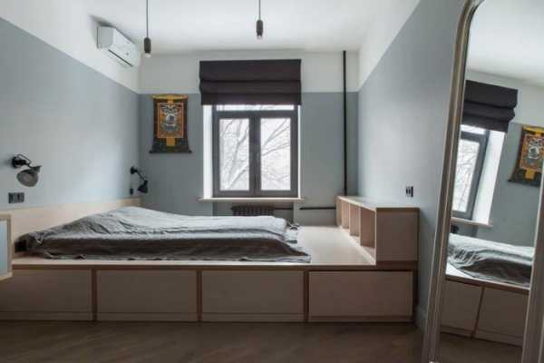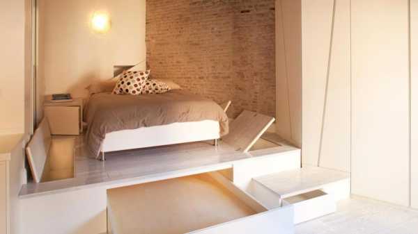 Подиум может быть вообще полифункциональным и совмещать в себе одновременно кровать, книжные полки и прикроватный столик. Вариантов совмещения функций подиума большое множество – достаточно лишь определиться с тем, что вам больше нужно.