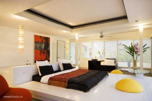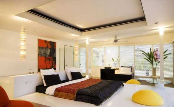 Огромный подиум в просторной спальне – оригинальное дизайнерское решение