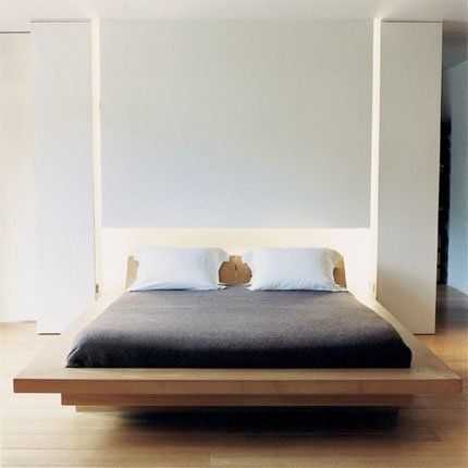 На сегодняшний день кровать-подиум завоевала лидирующие позиции в современных интерьерах, особенно там, где присутствует стиль минимализм. Все потому, что выглядит такая кровать действительно стильно и современно. Отличаются же кровати-подиумы от традиционных некоторыми конструктивными особенностями. В обычной кровати каркас играет роль футляра или ниши, в которую матрас вкладывается. Подиумные же кровати представляют собой каркасы невысоко поднятые над полом, и матрас укладывается сверху на ровную поверхность кровати-подиума. Иногда в подиуме имеется неглубокая выемка, чтобы матрас не соскальзывал. Такие кровати делают как с дорогих пород дерева, так и с более бюджетных пород или даже из старых поддонов. Мы собрали для вас 50 идей, которые возможно вас вдохновят. Наслаждайтесь…