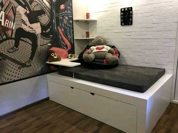 Несмотря на то, что изначально идея подразумевала решение проблемы маленькой площади, на деле не всегда ее реализация оправдывает изначально поставленную цель. А все потому, что нужно учесть массу нюансов: особенности планировки, высоту потолков, расположение оконных, дверных проемов, ниш и др. В слишком маленьких помещениях также лучше отказаться от данной задумки. Ведь для того, чтобы выкатить кровать, должно быть предусмотрено свободное место;