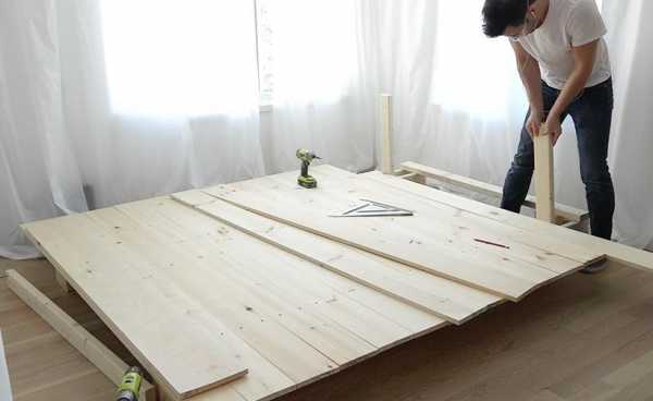 Сделать простую кровать-подиум не составит большого труда, имея в наличие нужные инструменты и навыки работы с деревом. Данная кровать собрана из обычных сосновых балок и стандартных досок, которые можно приобрести в строительных гипермаркетах. Размер кровати зависит от размера вашего матраса. Все шаги сборки указаны на фотографиях. Если у вас возникнут вопросы — оставляйте комментарии под статьей. Мы вам обязательно поможем!