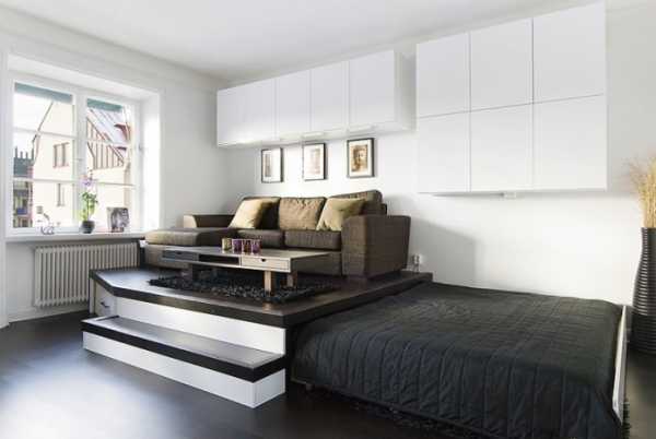 Кровать-подиум в квартиреВо многих статьях нацеленных на продвижение очень часто пишут, что кровать подиум является хорошим решением экономии жилого пространства, а так же отличным дизайнерским решением. Некоторые абсолютно некомпетентные писаки указывают на возможность установки подиума не только в двухкомнатной но и однокомнатной малометражной квартиры. От такого бреда уши сворачиваются в трубочку.