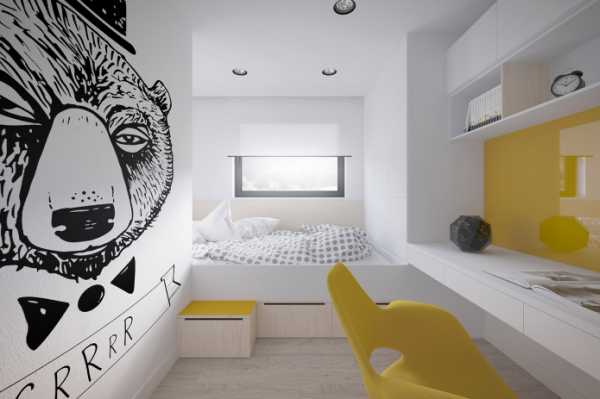 Подиум с выдвижной кроватьюСреди больших ни не эргономичных кроватей встречаются и очень даже практичные варианты с использованием подиума. В детских комнатах так же не исключено использование подобных кроватей. Однако стоит понимать, что ребенку требуется место большое пространство для игр и место для учебы. В данном случае может подойти кровать, которая вопреки классическому представлению находится не на подиуме а в нем. Такую кровать можно свободно выкатывать из под подиума при подготовке ко сну, а в дневное время убирать. Получается, что кровати как будто и нет в комнате — а это весомая экономия пространства.