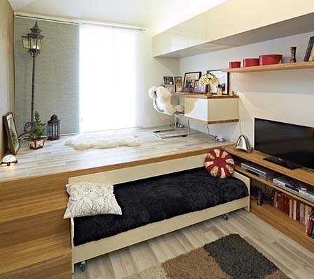 По функциональному признаку различают кровати простые и сложные, со встроенными системами хранения. Кроме выдвижной кровати можно оборудовать подиум и ящиками для хранения постельного белья, подушек, одеяла, что также дополнительно экономит место и помогает организовать порядок.