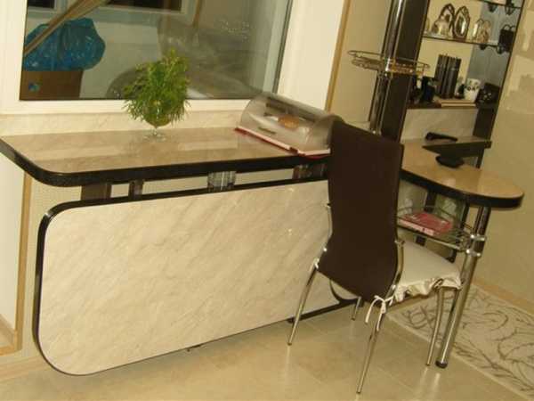 - на маленькой кухне, где нет места для полноценного обеденного стола и рабочей поверхности.