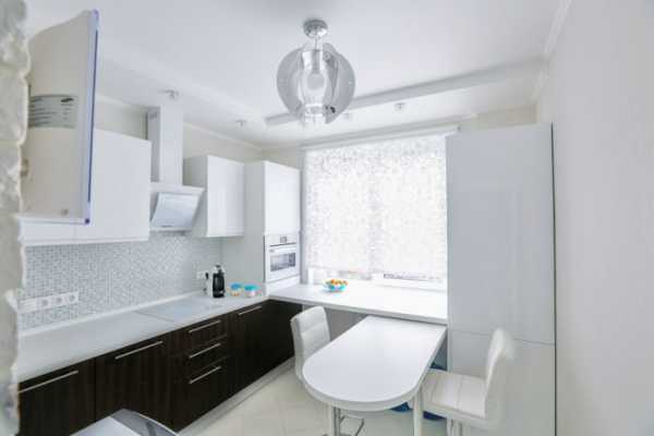 Часто у владельцев маленьких квартир возникают проблемы именно с обустройством малогабаритной кухни, в которой нужно выделить место для рабочей зоны, территорию для приема пищи, для кухонной посуды и бытовой техники. Специалисты, столкнувшись с такой проблемой, предлагают выигрышный вариант – вместо подоконника установить столешницу.