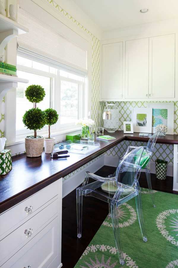 Подоконник, переходящий в письменный стол, является очень практичным и нужным решением, позволяющим сформировать комфортное рабочее место и придать интерьерному пространству продуманности.
