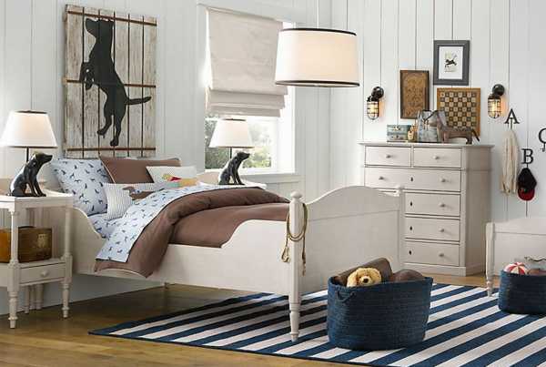 Морской — якоря, голубые и синие цвета и дубовый стол образуют комнату-корабль в детской. Мальчики, будущие мореплаватели оценят.