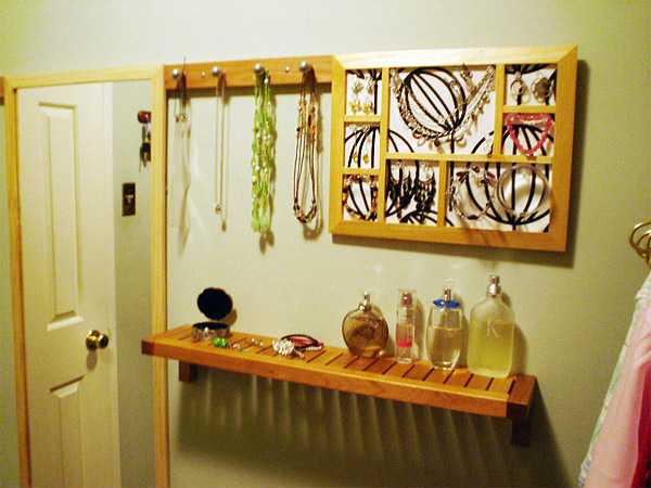 Конечно, можно всё ваше «добро» сложить в ящик или шкатулку, но, как показывает практика, там вечно всё путается, особенно цепочки. А можно расположить всё аккуратно, творчески и без особых материальных затрат.