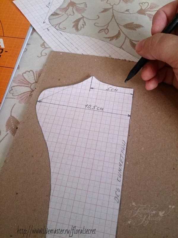 Теперь нам нужно перенести нашу выкройку на плотную основу. Я использовала довольно толстый переплетный картон, но можно воспользоваться и более тонким, склеив его в пару-тройку слоев для жесткости.
