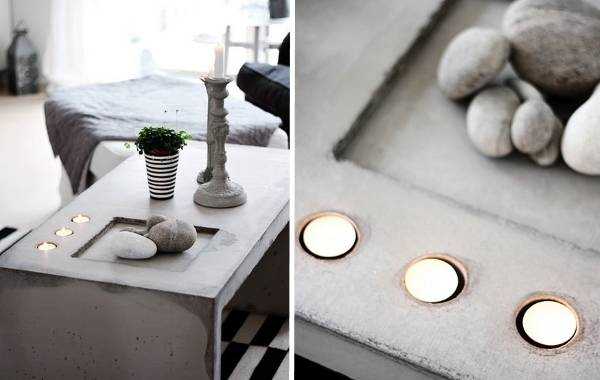 Подставки для свечей из бетона подойдут и для украшения интерьера веранды