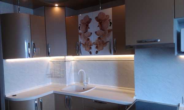 Освещение кухонных шкафов с помощью светодиодной лентыИспользование накладных светодиодных светильников для кухни под шкафы