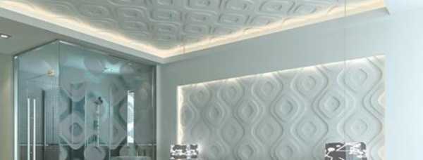 Есть и другие варианты применения 3D панелей – для украшения стен. Вместе с потолками, оформленными подобными деталями, они составляют очень гармоничную картину.