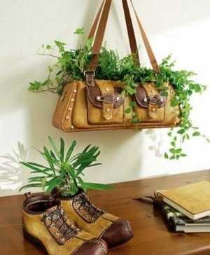 Старый сдувшийся мячик можно использовать как подвесную тару для горшка. Эффектнее всего будет смотреться баскетбольный или футбольный мяч. Его нужно разрезать пополам и проделать дырочки в краях под шнур. Очень важно при этом подобрать форму горшка так, чтобы она повторяла естественную форму мяча. Прекрасно подойдет для ампельных растений.