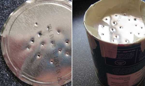 5. С помощью шила или острого конца ножниц делаем своими руками три отверстия в районе горловины плафона.