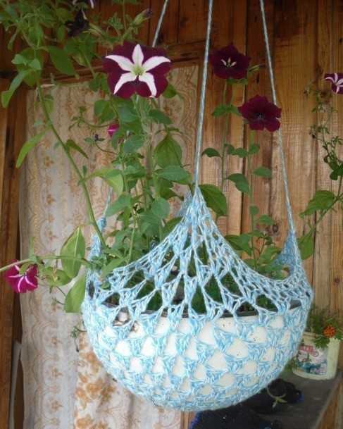 А любителям плести макраме предлагаю еще одну интересную идейку, как можно сделать подвесное кашпо для любимых цветов.