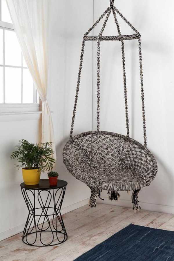 Важно правильно выбрать место для таких подвесных качелей, так как не все типы потолков подходят для такого крепления. Главное в этом деле — безопасность! Помните, что крепить подвесное кресло на потолок можно только в том случае, если у него есть прочное бетонное основание, в котором можно закрепить кронштейн для крепежа.