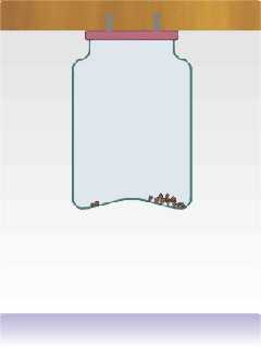 Если же инструментальный стеллаж обычный, с деревянными полками, то хорошим довеском будут несколько стеклянных банок из-под овощных консервов с завинчивающимися крышками, отвергнутых хозяйкой из-за того, что пластиковое напыление внутри крышки стерлось и она поржавела. Крышки привинчивают к исподу полки (след. рис. справа), а в банках хранят мелкие метизы – сразу видно, где что находится.