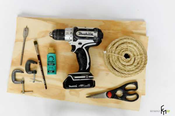 Для начала необходимо разметить заготовку и померить диаметр верёвки. Потом просверлить отверстия, точно такого же диаметра, как и диаметр вашей верёвки – это важно.