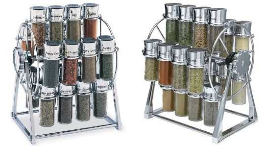 Такой модуль не займет много места, а его вместимость удовлетворит требования любого повара. Двадцать контейнеров для специй и приправ удобно расположены, а дизайн изделия выглядит весьма оригинально. Вращающийся барабан, позволит без труда достать нужную пряность. Для этого всего лишь поверните его. Контейнеры для приправы надежно подвешены, но легко досягаемы. При использовании вы не просыплете ни крошки, так как за идеальным балансом следит сам закон всемирного тяготения.