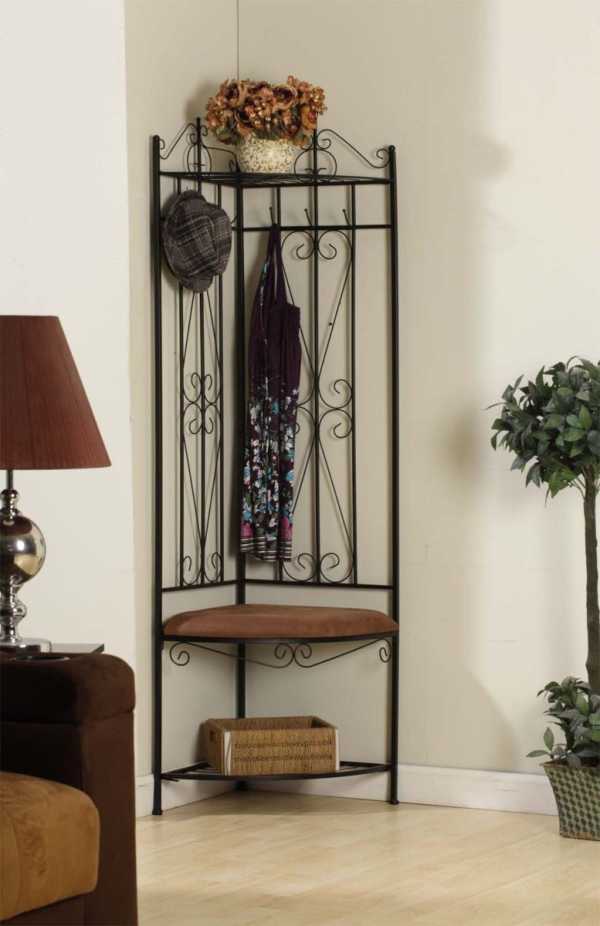 Классический и стильный вариант, это кованая вешалка. Такой вариант смотрится необычно и элегантно.
