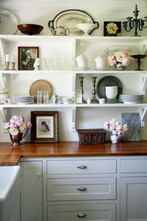Более затейливых форм и украшений для открытого стеллаж требует прованский или романтичный интерьер