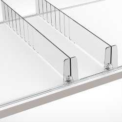 Полочные разделители и системы подачи товара к краю полки, представленные в этом разделе, обеспечивают идеальный порядок на полке и упорядоченную выкладку товара даже часы пик. Широкий выбор в нашем каталоге позволяет подобрать решение для продуктов разной высоты и полок самых разных размеров.