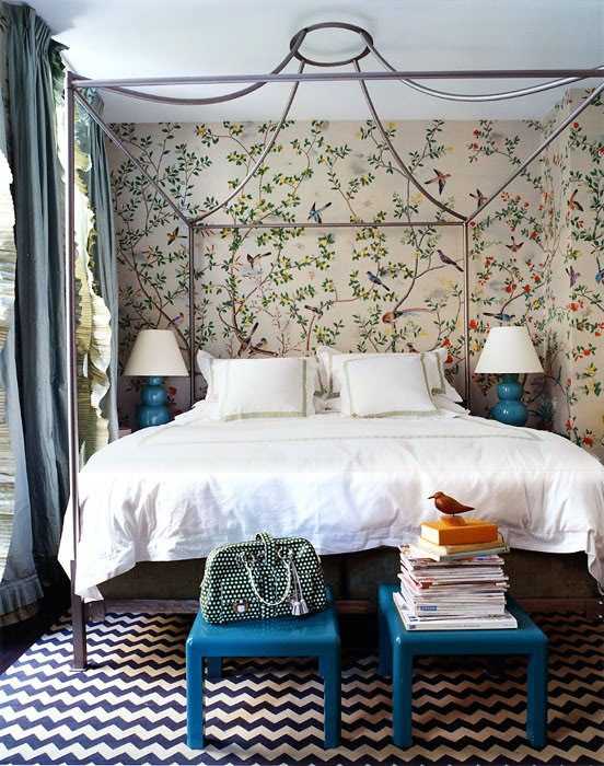 Если вы все еще боитесь повесить балдахин или полог над кроватью — решайтесь! Даже в маленькой спальне такой предмет декора не будет лишним, ведь он некоторым образом организует пространство и спрячет все лишнее от посторонних глаз.