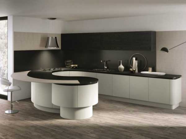 Что интересно, форма полуострова тоже может быть разной, и это зачастую определяет планировку интерьера. Самым популярным можно назвать полукруг, радиус дуги которого может быть небольшим – для организации кухонного рабочего места или же более существенным – здесь с комфортом можно обустроить столовую или барную стойку.