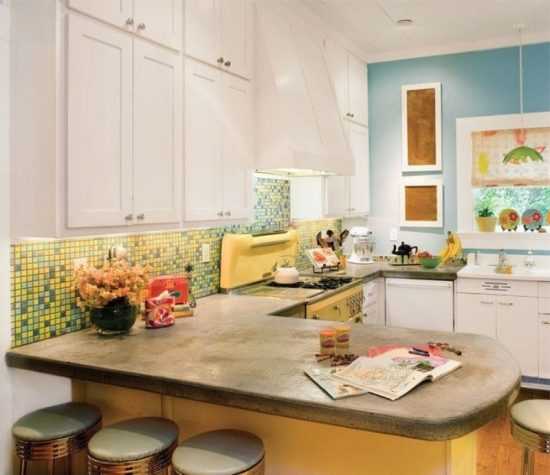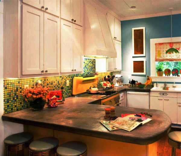 В то время как остров представляет собой рабочую поверхность, полуостров чаще всего служит местом для приёма пищи. Современные дизайнеры предлагают нам очень оригинальные модели разных форм и расцветок, выполненные из натуральных или искусственных материалов.