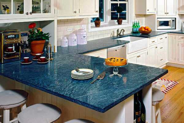 Здесь мы видим встроенную раковину и прочную поверхность из натурального камня
