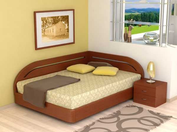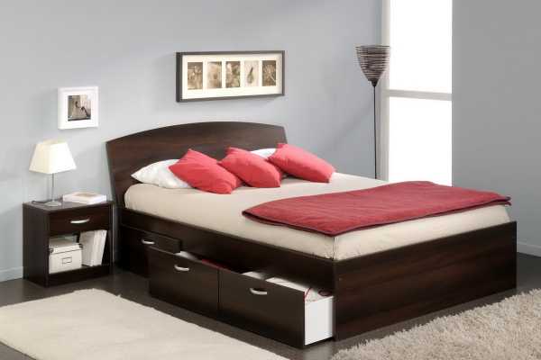 - Кровать должна поместиться в помещении и в то же время не занимать все свободное пространство. Габаритные варианты подходят для больших комнат. В случае с небольшими площадями, стоит обратить внимание на компактные модели.