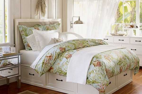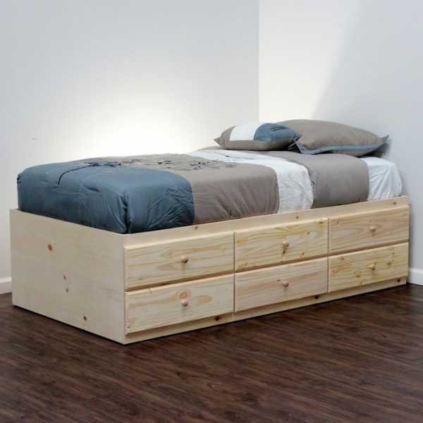 Полутороспальная кровать с выдвижными ящиками, встроенными в ее основание в один или несколько уровней, в каталогах производителей может носить название «капитанская кровать». Она гораздо выше стандартных моделей и является полноценной системой хранения, позволяющей сэкономить полезную площадь в спальне или детской.