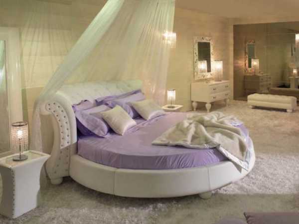 Нужна по-настоящему большая кровать? Обратите внимание на модели необычных форм, например, овальные или круглые. Самая маленькая круглая кровать имеет в диаметре 220 см, а есть и больше – все зависит от желания и финансовых возможностей. Для того, чтобы в спальне гармонично разместилась круглая кровать, размеры ее должны соотноситься с размерами комнаты а отделка – соответствовать стилю интерьера. Нелепо будет смотреться кровать круглой формы в этно-интерьере или в современном лофте. Не подходит она и к скандинавскому стилю. А вот в арт-деко или восточных направлениях вполне уместна.