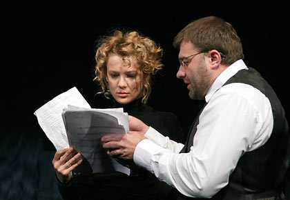 М. Голуб (Гертруда), М. Пореченков (Полоний), К. Хабенский (Клавдий). «Гамлет». МХТ им. Чехова