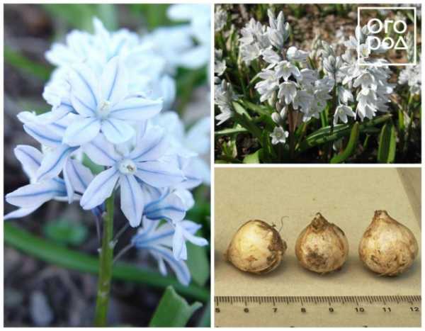 | Пролеска (сцилла) | Не более 15 см. Цветки — поникшие колокольчики окраса от голубого до фиолетового, расположены на прямых цветоносах. Листья ремневидные. | Сажают в конце августа-начале сентября на глубину 10 см. |