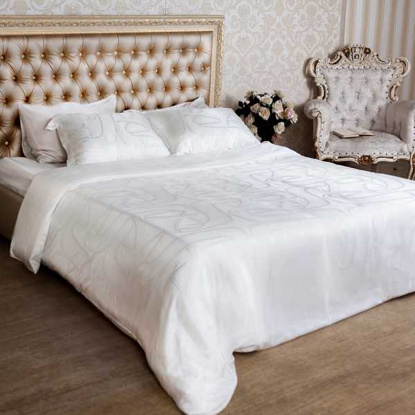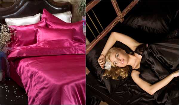 Шелк — ткань очень нежная, тонкая и мягкая. Всем известно, что он пришел к нам из Китая. Благодаря треугольному сечению составляющих его нитей, шелк обладает свойством отражать свет, как призма. Именно этим обусловлен ярчайший блеск ткани и красивые переливы. Он гиппоаллергенен и обладает способностью терморегуляции. Поэтому в жаркую ночь простыня из шелка будет приятно холодить ваше тело, а зимой вы быстро согреетесь в такой постели.